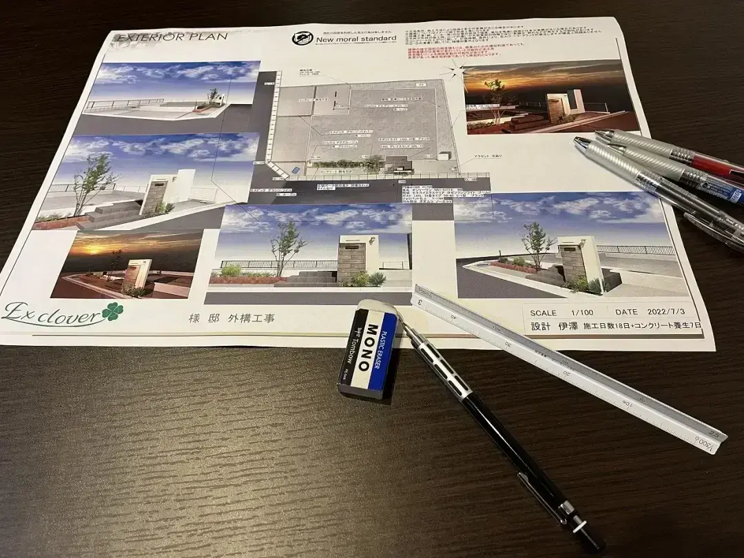弊社では、窓口から一貫して代表の伊澤が携わっております。そのため、スムーズな工事が可能です。気になったところの質問にもすぐお答えでき、設計途中の変更にもスピーディーに対応できます。お客様のご要望を的確に反映した理想の外構工事が可能です。