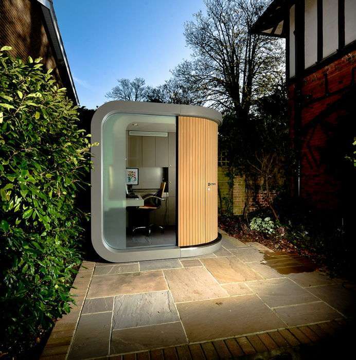 究極のガーデンオフィスと言えるのが、庭に独立した小さな「離れ」や、ガラス張りの「ガーデンルーム」を設置するスタイルです。